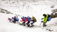 (Links: Gruppenbild über der Niederelbehütte Rechts:Schneetour zur Niederelbehütte © Edwin Schuler, Stephan Schneider SVB)